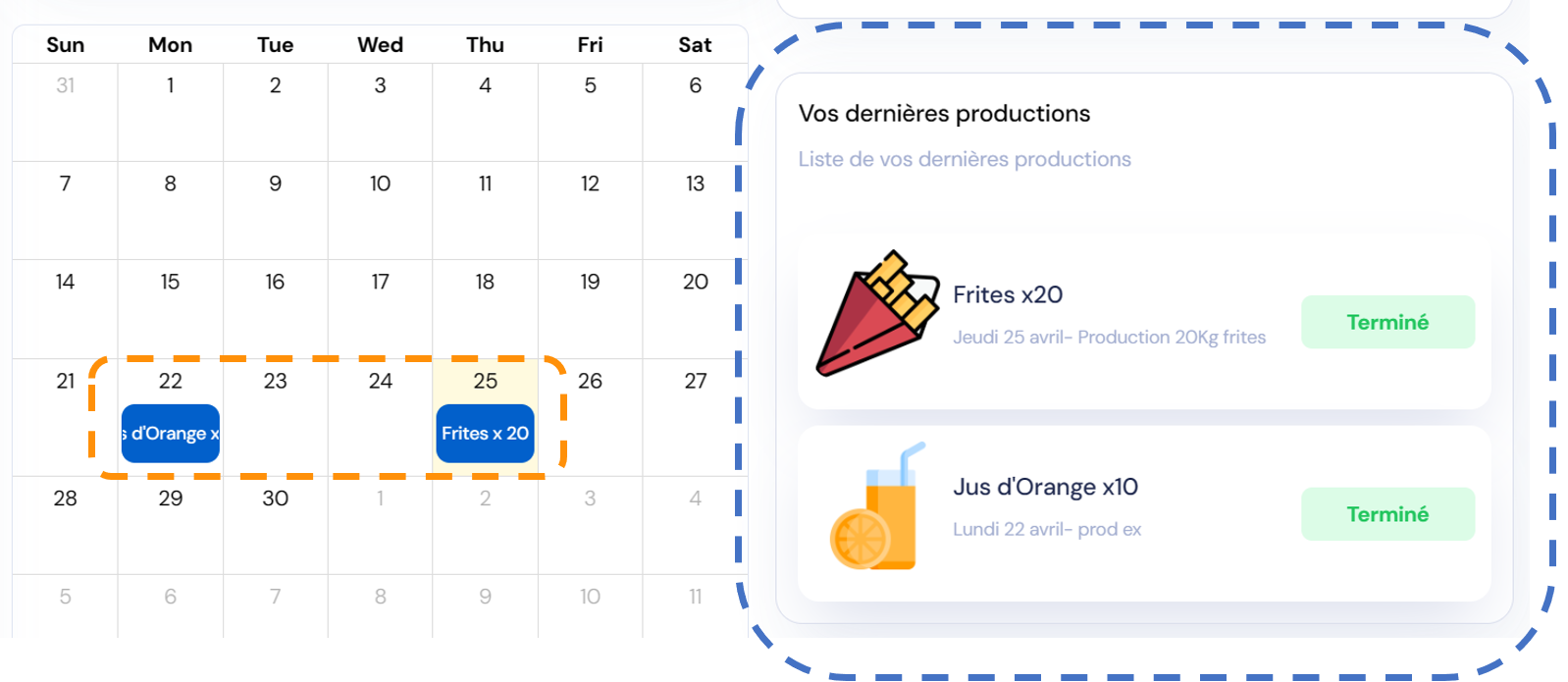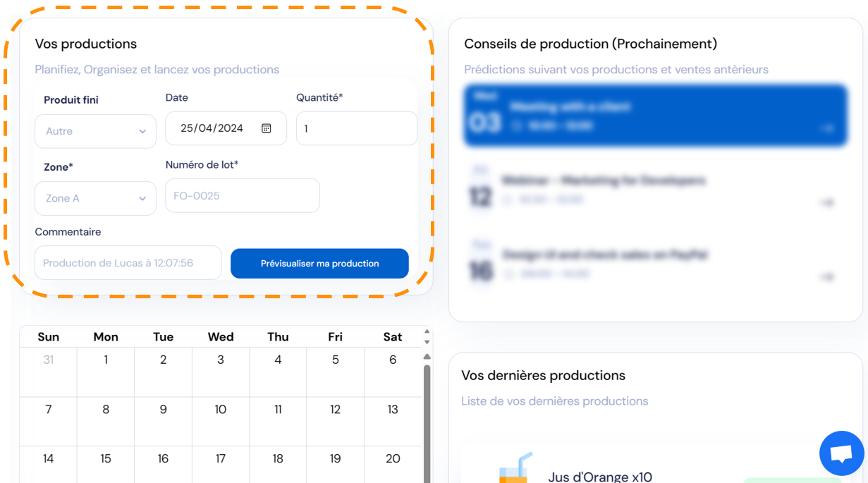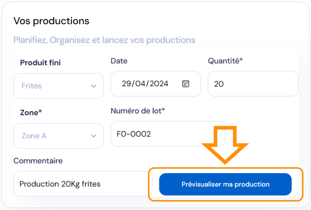 Voici comment vous pouvez lancer votre production depuis l'espace stock : onglet Production