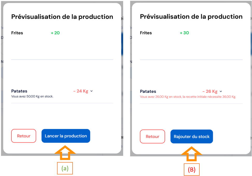 4. Ce bouton vous permettra : de visualiser la baisse de vos stocks de composant (a)